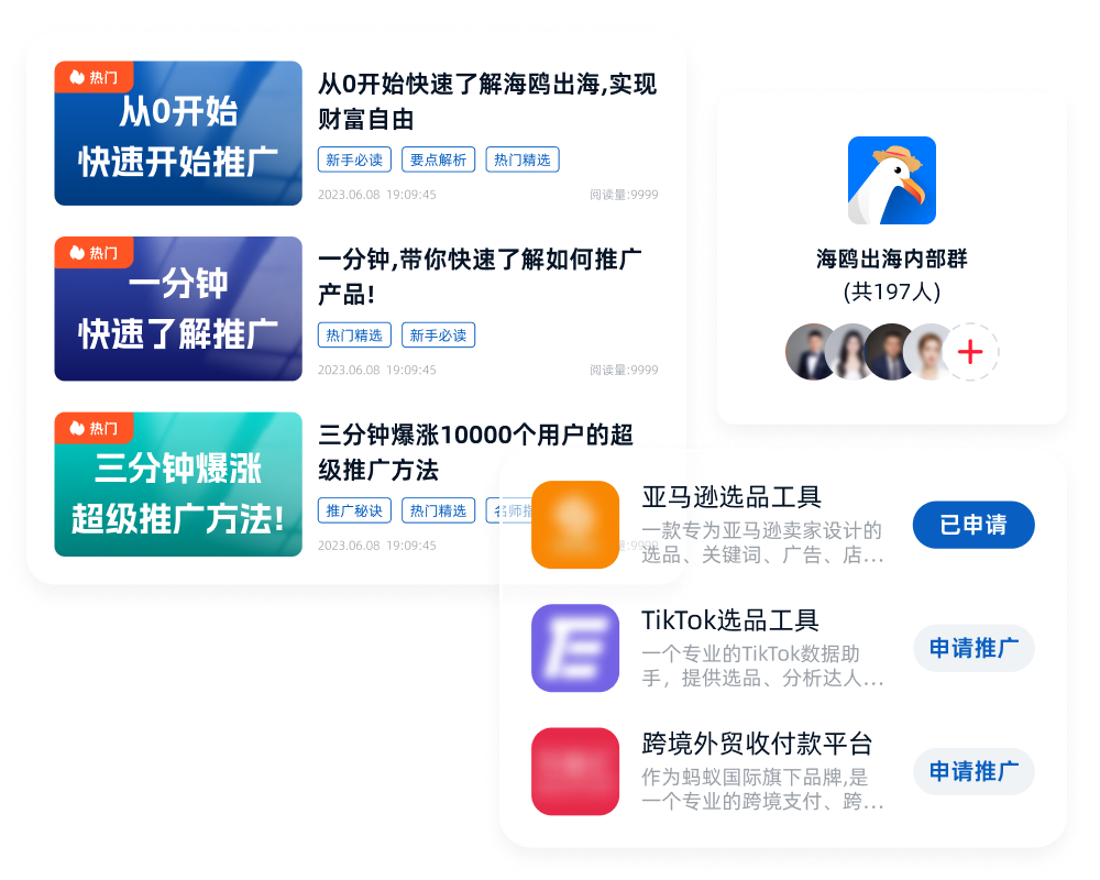 我们寻找优质的服务商和项目,为“海鸥”们提供不断更新的商业机会,推动行业发展。同时帮助更名项目方进行推广,实现共赢。